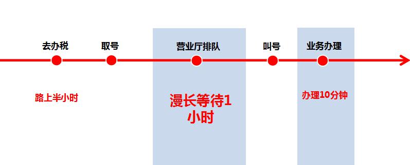 ③、去辦事大廳辦理業(yè)務(wù),花半小時到達辦事大廳,取號,再等30-60分鐘甚至兩個小時時間,最后花10-15分鐘甚至更少時間用于實際辦業(yè)務(wù);④、還有的人取了號,出去辦事,估摸著時間折返回辦事大廳,時間的拿捏當(dāng)然是很困難的,因為你無法準(zhǔn)確的估算每個人辦業(yè)務(wù)花費的時間,人數(shù)越多,這種時間越難把握。